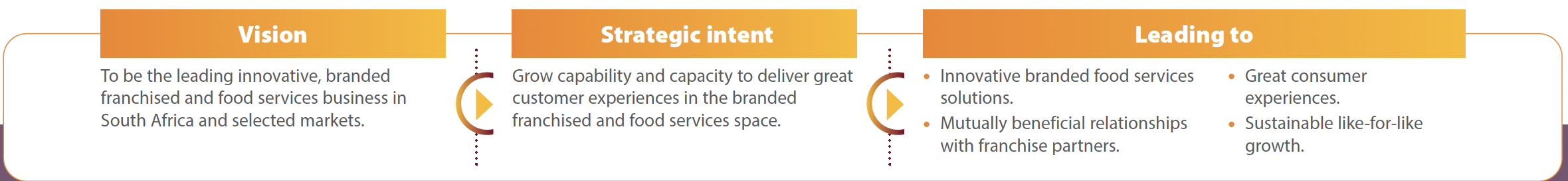 We promote frequency and loyalty among consumers with our brand apps and loyalty programmes. Wimpy and Mugg & Bean apps have an over 68% redemption of loyalty points.
